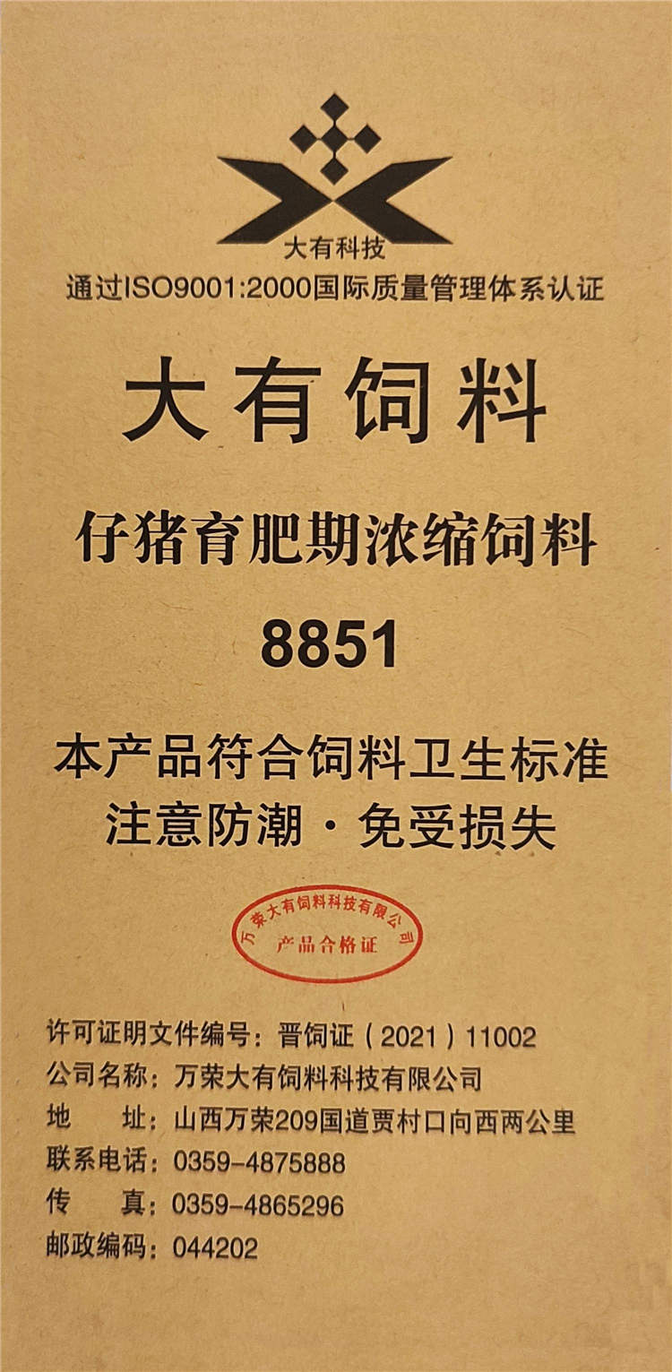 大有飼料8851仔豬育肥濃縮飼料